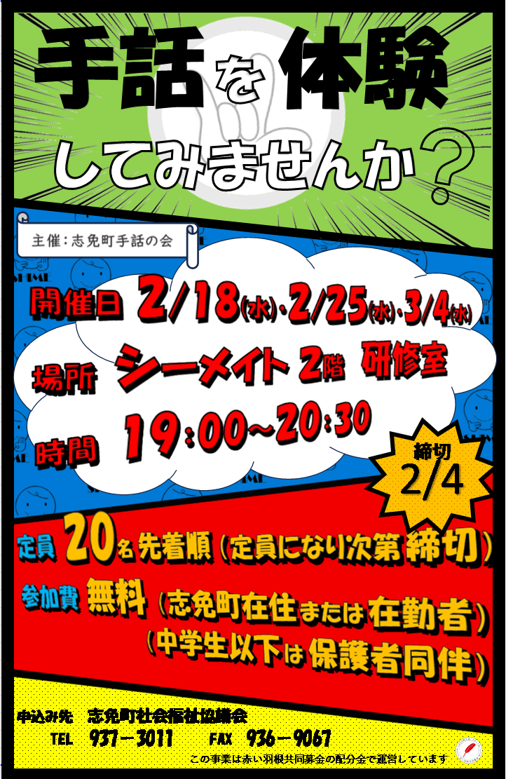 【志免町社会福祉協議会 ℡092-937-3011】 ※ここからチラシをご覧いただけます。